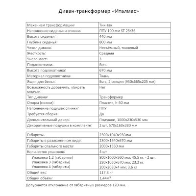 Диван-трансформер Италмас (Аквилон) продается в интернет-магазине mebel313.ru по цене 73 376 руб. Есть доставка по Дзержинску и Нижегородской области. Возможность подъема на этаж и сборки уточняйте у менеджера по телефону 8(800)505-27-11.
