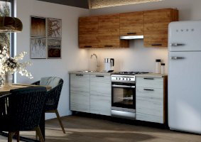 Кухонный гарнитур «Глория» прекрасно подойдет для небольшой кухни. Компактность этой кухни идет рука об руку с ее практичностью, и это не пустые слова. «Глория» спроектирована таким образом, чтобы наиболее рационально использовать ограниченное пространство кухонного помещения.